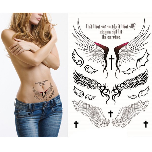 Stiker Tato Seni Tubuh Sementara Motif Sayap Malaikat Besar
